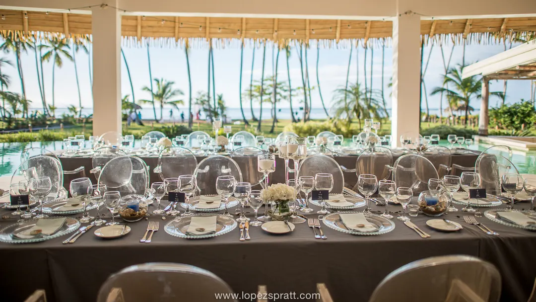 Der Esstisch war wunderschön dekoriert von DOMINICAN EXPERTs Hochzeitsplanern.