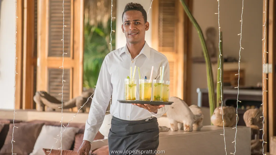 Kellner kümmerten sich um die Gäste und versorgten sie unter anderem mit unserem einzigartigen Passionfruit-Cocktail.