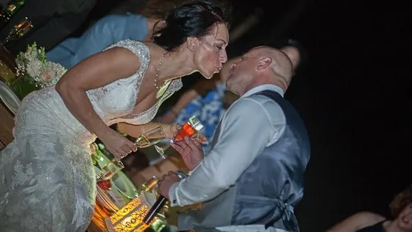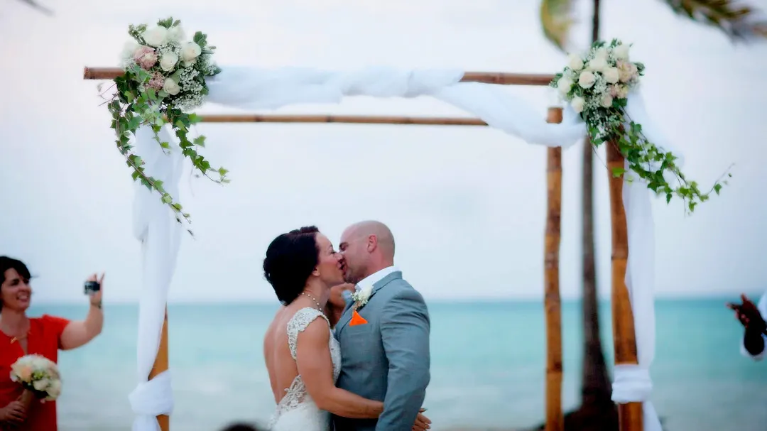 Der erste Kuss als verheiratetes Paar unter Palmen in der Karibik!