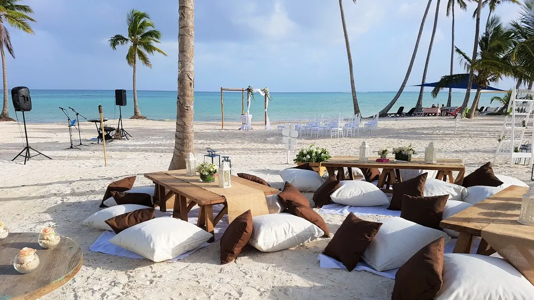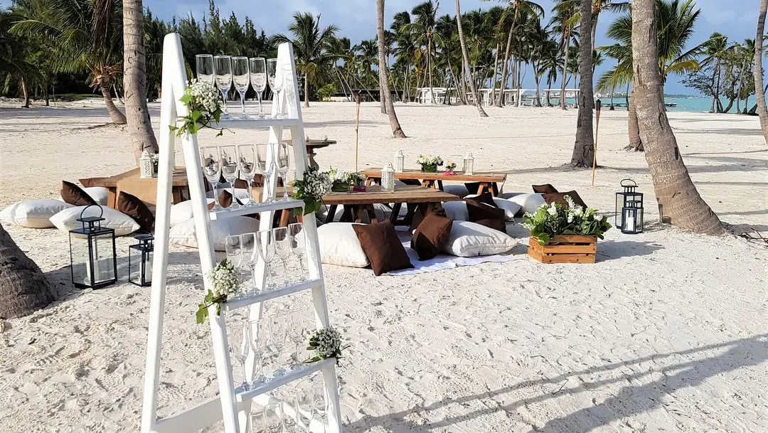 Lexi und Santino heirateten an diesem atemberaubenden, unberührten Strand in Punta Cana. Die Zeremonie begann mit wunderschöner Livemusik, die für Gänsehaut sorgte und kein Auge trocken ließ. Braut und Bräutigam entschieden sich für eine rustikale Dekoration für ihre Hochzeit am Strand mit einer gemütlichen Beach Lounge unter schwingenden Palmen in absoluter Privatsphäre und mit einem atemberaubenden Meerblick. Nach der Zeremonie stand Champagner bereit, damit alle Gäste auf das frisch verheiratete Paar anstoßen konnten. Sobald es sich alle in der Lounge gemütlich gemacht hatten, wurden leckere Appetizers und tropische Cocktails serviert und die Hochzeitsgesellschaft feierte in der wunderschön mit Kerzen und Fackeln beleuchteten Lounge bis spät in die Nacht.