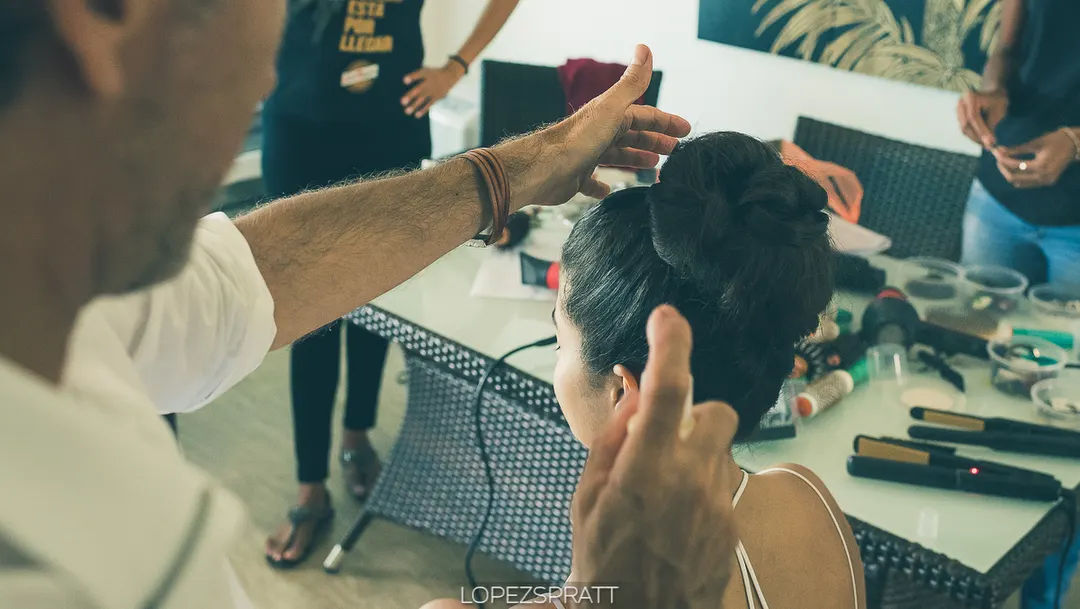 Ein professioneller Stylist war ebenfalls vor Ort und half der Braut, sich für ihren großen Tag fertig zu machen.