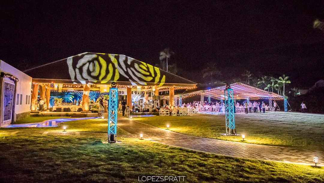 Die schön beleuchtete Hochzeitslocation.